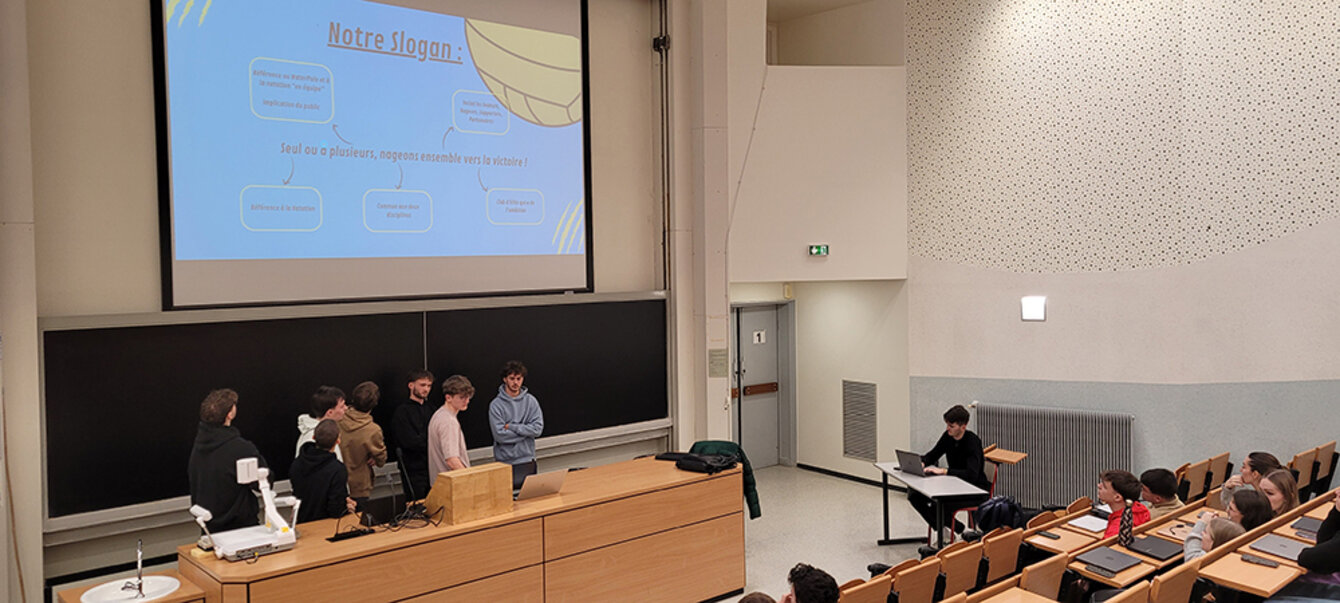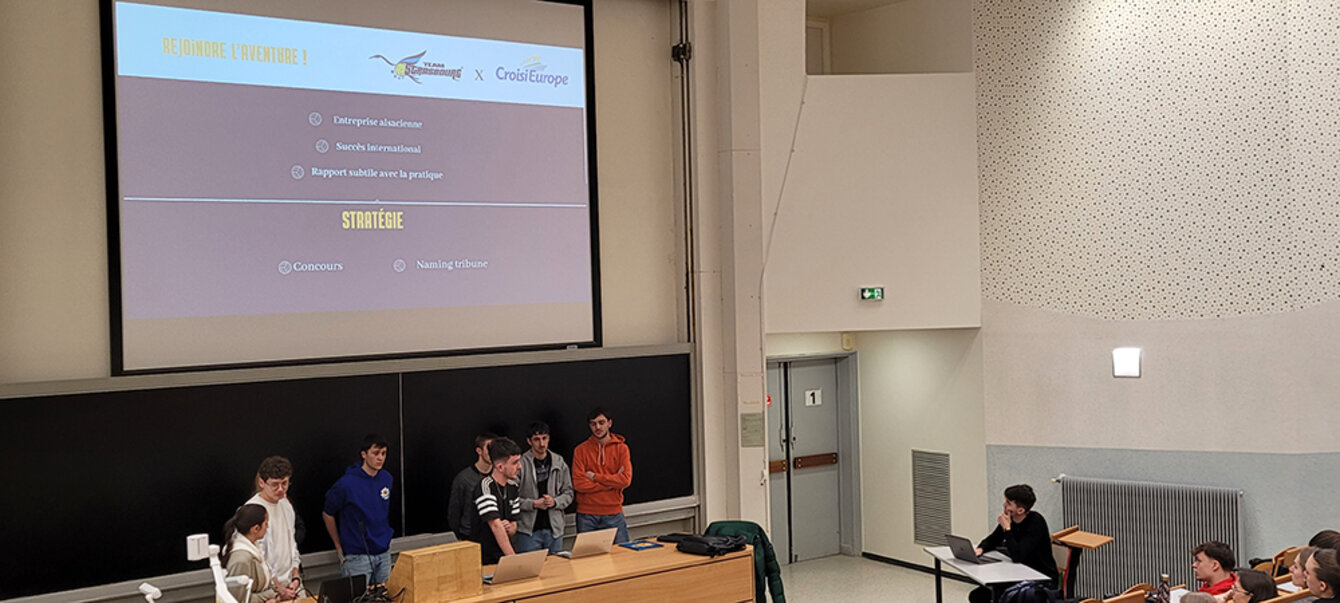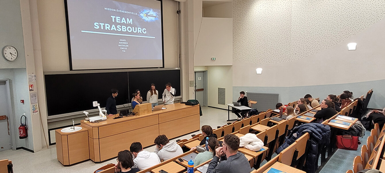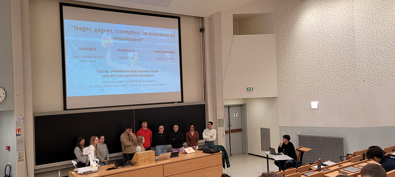 Dans un second temps, les étudiant·es ont travaillé par groupe, sur trois missions dont Léo Dub a actuellement la charge au Team Strasbourg. En se confrontant à un projet concret et réel (étude de cas avec missions commerciale, évènementielle et de communication), les étudiant·es ont progressé collectivement et professionnellement.
