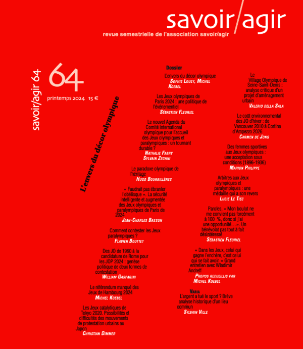 À l'occasion des Jeux Olympiques 2024, Michel Koebel, sociologue, membre de l’unité de recherche Sport et sciences sociales et Sophie Louey, sociologue à Sciences-Po Paris, ont consacré le n°64 de la revue « Savoir/Agir » à la face cachée des Jeux olympiques.