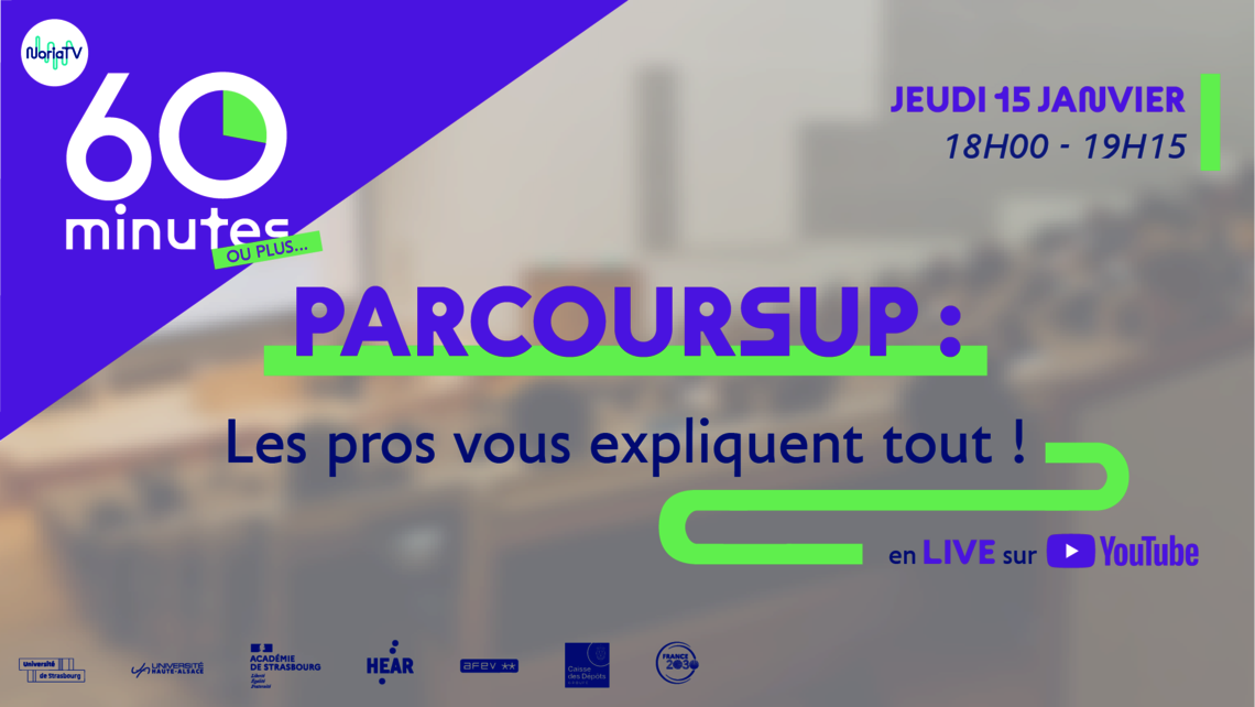 Rendez-vous le jeudi 15 janvier de 18h00 à 19h15 sur la chaîne YouTube NoriaTV pour l'émission : « Parcoursup : les pros vous expliquent tout ! »